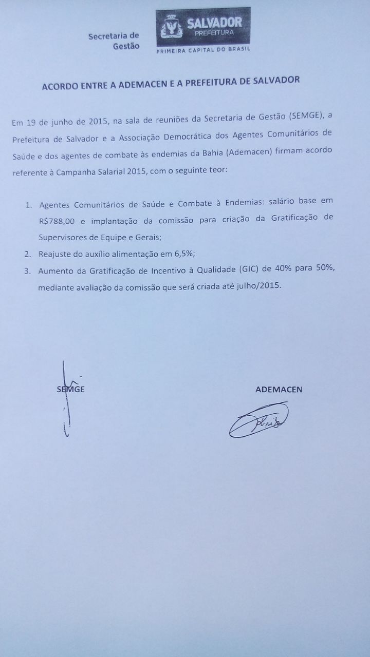 | Acordo firmado entre ADEMACEN e a Prefeitura de Salvador |