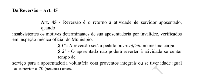 Não terá direito a reversão o servidor que se aposentar por tempo de serviço, ou aqueles aposentados com idade superior a 70 anos.